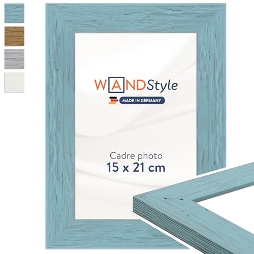 WANDStyle Cadre photo bois rustique, cadre A5 bleu, cadres photo 15x21 cm mural, encadrement tableau 21x15 cm, cadres pour photos, encadrement à suspendre et à poser, H750 – Made in Germany