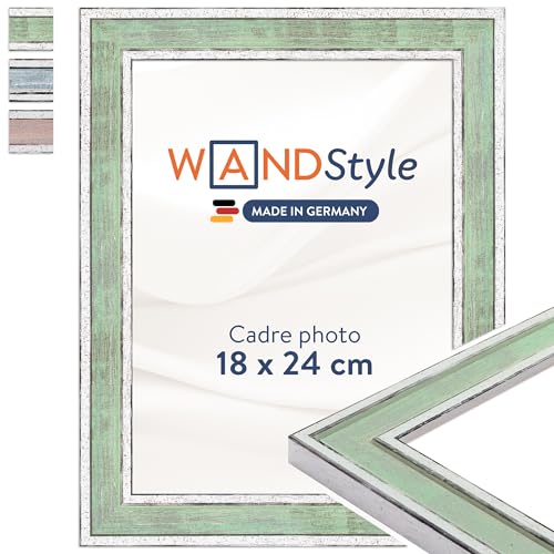 WANDStyle Cadre photo bois vintage, cadre vert clair, cadres photo 18x24 cm mural, encadrement tableau 24x18 cm, cadres pour photos, encadrement à suspendre et à poser, H460 – Made in Germany