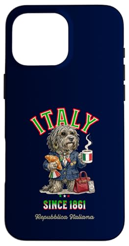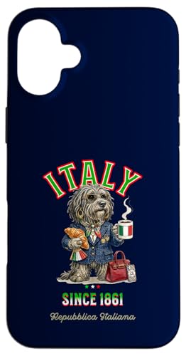 Adorable Tasse à café en Forme de Chienne bergamasque avec Drapeau Italien Coque pour iPhone 16
