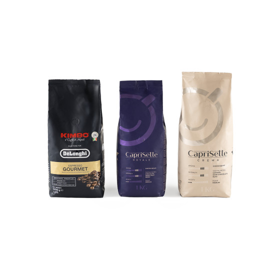 Ensemble de grains de café Caprisette Royale x Caprisette Crema x DeLonghi Kimbo Gourmet, 3 kg