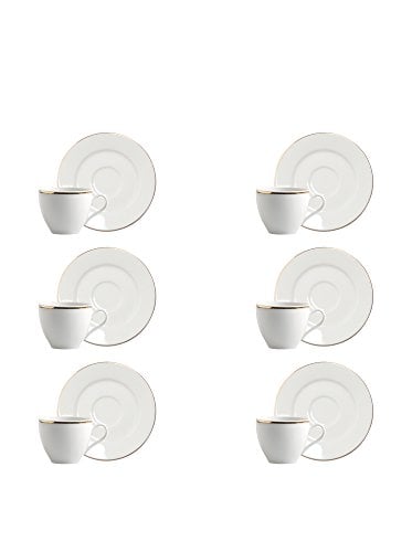 Excelsa Gold Lot de 6 tasses à café avec soucoupe, porcelaine, blanc, bord doré