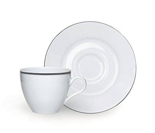 Excelsa Platinum Tasse à Café avec Soucoupe Porcelaine Blanc/Contour Argent 12 X 12 X 6 cm