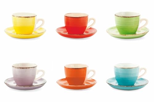 Villa d'Este Home Tivoli 2371741 Baita Service de 6 Tasses à café avec Soucoupe, grès, Multicolore, No, 6 unités