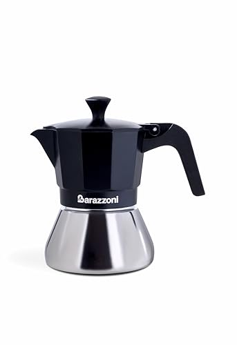 BARAZZONI, Cafetière, aluminium et acier, modèle Deluxe Induction, 3 tasses, sûre, solide, élégant, poignée et bouton anti-brûlure, parfait pour les plans à induction, certifié