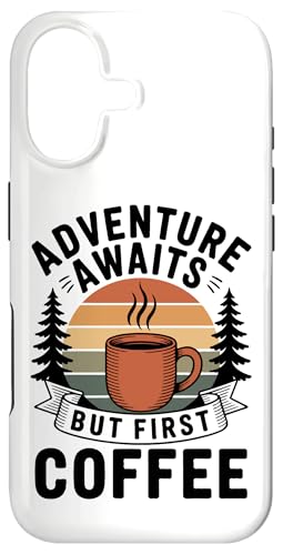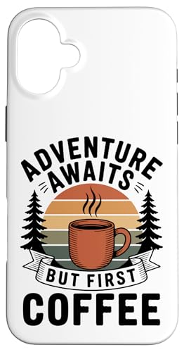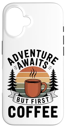 Adventure Awaits Cafetière Lover Randonnée Camping en Plein air Coque pour iPhone 16