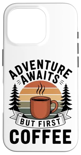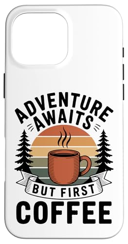 Adventure Awaits Cafetière Lover Randonnée Camping en Plein air Coque pour iPhone 16 Pro Max