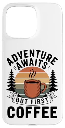 Adventure Awaits Cafetière Lover Randonnée Camping en Plein air Coque pour iPhone 15 Pro Max