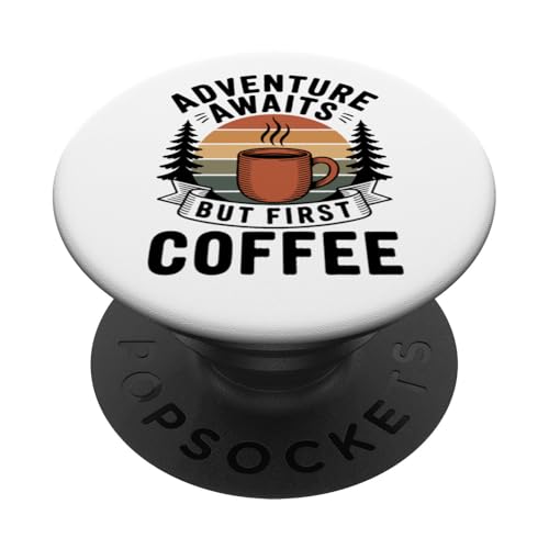 Adventure Awaits Cafetière Lover Randonnée Camping en Plein air PopSockets PopGrip Adhésif