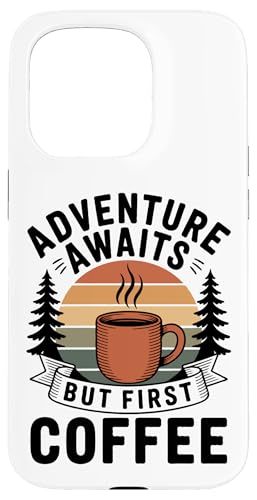 Adventure Awaits Cafetière Lover Randonnée Camping en Plein air Coque pour iPhone 15 Pro