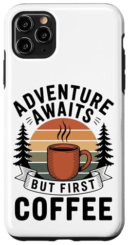 Adventure Awaits Cafetière Lover Randonnée Camping en Plein air Coque pour iPhone 11 Pro