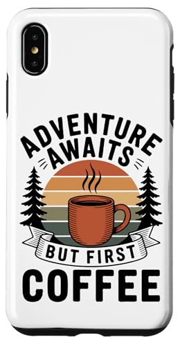 Adventure Awaits Cafetière Lover Randonnée Camping en Plein air Coque pour iPhone XS Max
