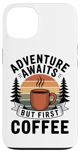 Adventure Awaits Cafetière Lover Randonnée Camping en Plein air Coque pour iPhone 13