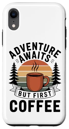Adventure Awaits Cafetière Lover Randonnée Camping en Plein air Coque pour iPhone XR