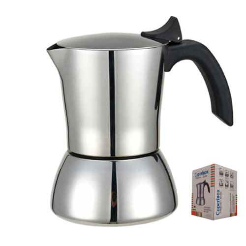 CUPERINOX Cafetière en acier inoxydable Deluxe, 6 tasses, cafetière italienne à induction en acier inoxydable, poignée anti-brûlure, valve de sécurité