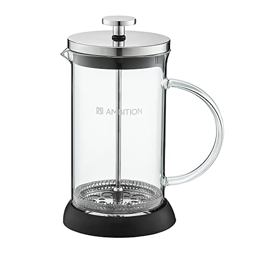 Ambition Cafetière à Piston 1 l en Verre Borosilicate avec passoire en Acier Inoxydable à Mailles Fines Poignée en Verre Design Sobre Rafaella