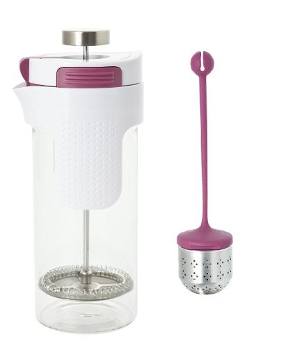 Idelice PR248 774A Cafetière à Piston/Théière 2 en 1 Verre Borosilicate Inox Aubergine 4/5 Tasses