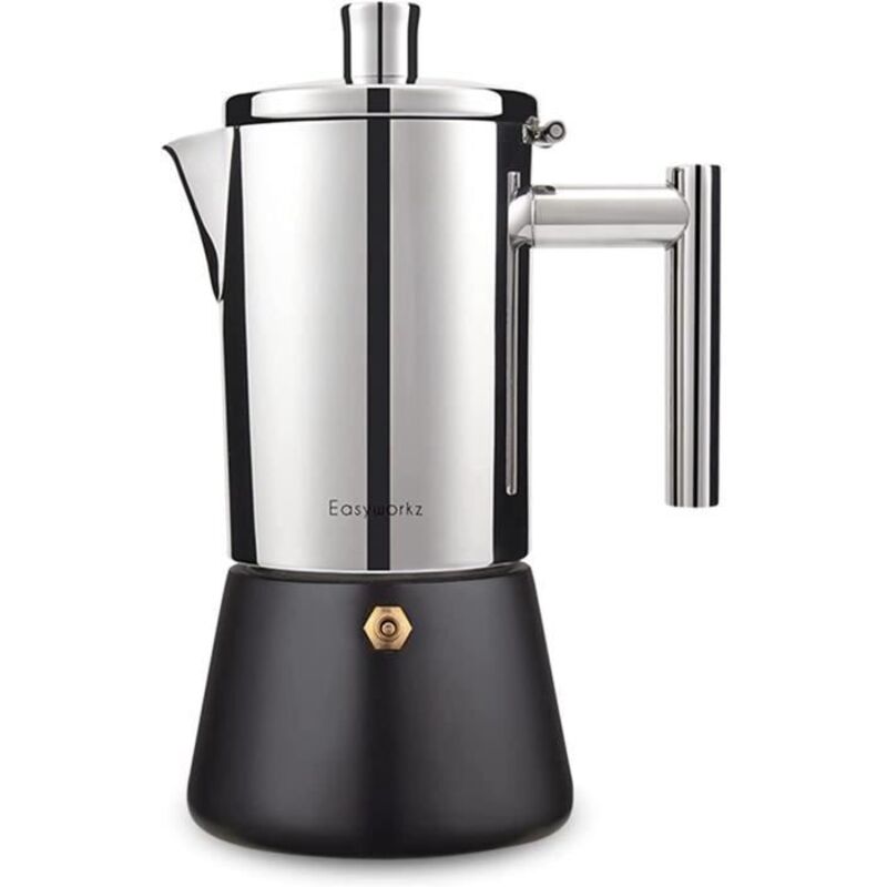 Easyworkz Diego Cafetière italienne en acier inoxydable pour 4 à 6 tasses 300ml Pour induction, gaz et tous les types de cuisini43