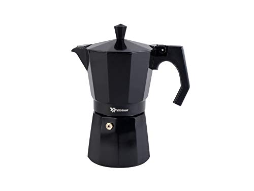 VITRINOR Black Cafetière italienne, 9 tasses, tous feux dont INDUCTION, fonte d'aluminium, extérieur noir, vlave de sécurité et joint en silicone