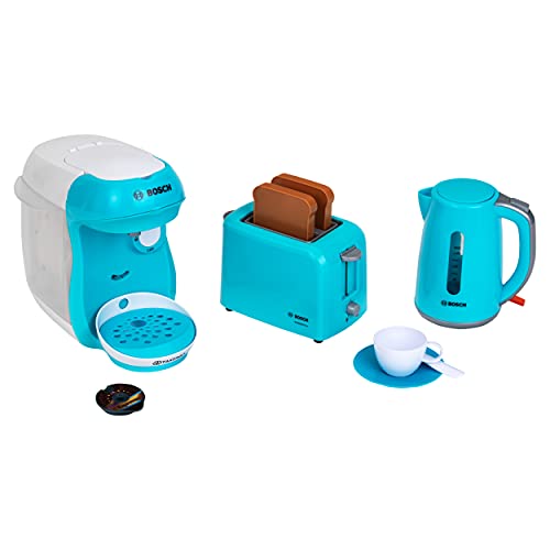 Theo Klein 9216 Bosch Set Petit déjeuner, Set d'accessoires de Cuisine composé d'un Grille-Pain, d'une cafetière Automatique et d'une Bouilloire électrique, Jouet pour Enfants à partir de 3 Ans