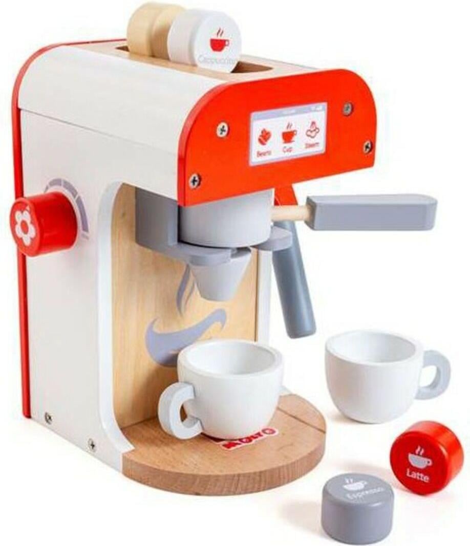 Mamabrum Machine à Café en Bois pour Enfants 3+, Jeu Rôle Barista avec Accessoires - Cafetière à Capsules, Jouet Éducatif pour Le Développement de la Motricité Fine (8 Pièces)
