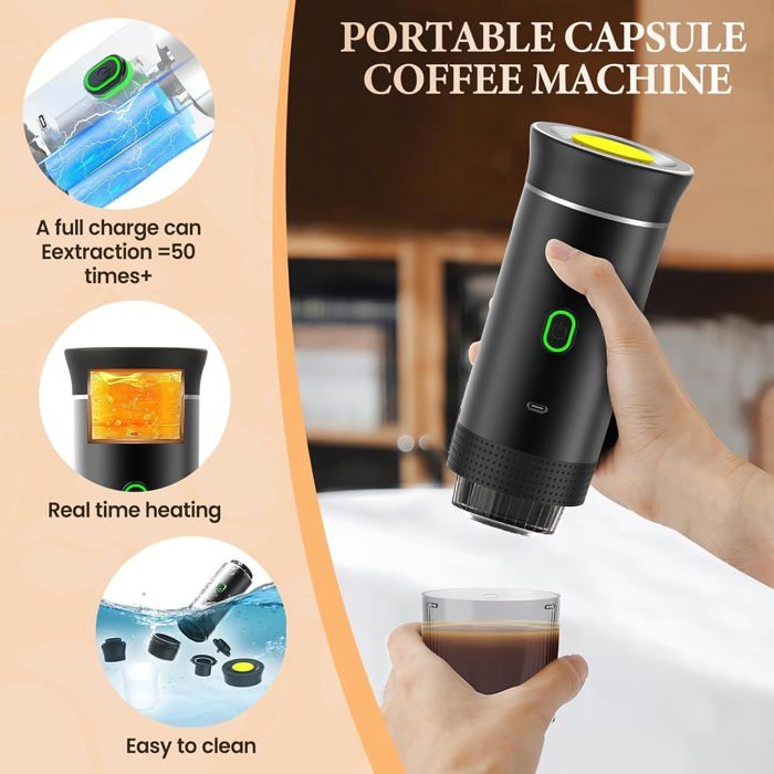 Cafetière Capsule Portable Automatique - 15 Bars - Extraction Professionnelle - USB - Pour Voyage Bureau Camping