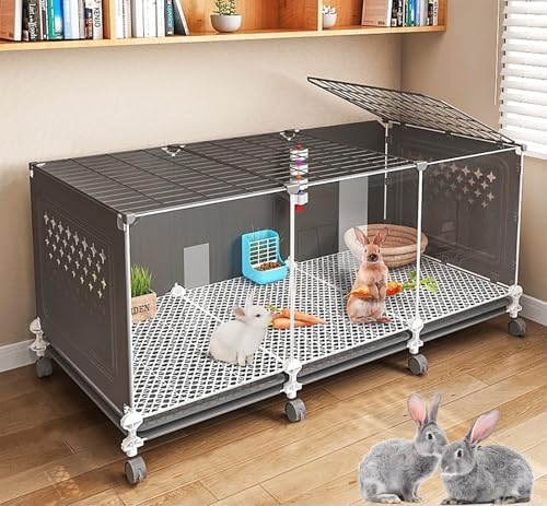 Cage à lapin d'intérieur sur roulettes, design transparent, avec plateau de nettoyage, cage pour petits lapins, facile à monter