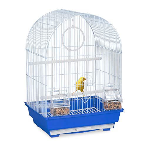 Relaxdays Cage à Oiseaux, canaris, perruches, avec perchoirs, balançoire & mangeoires, HLP 49,5 x 34,5 x 31 cm, Bleu