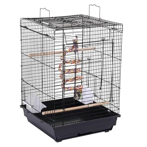 Yaheetech Cage à Oiseaux avec Jouets Poignée Cage pour Petit Oiseau Noir 48,5 x 47,5 x 39cm