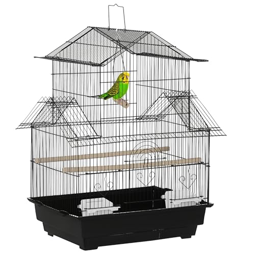 PawHut Cage à Oiseaux Design Maison mangeoires perchoirs 3 Portes Plateau excrément Amovible + poignée Transport 50,5 x 41 x 63 cm Noir