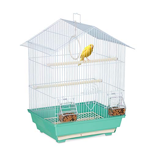 Relaxdays Cage à Oiseaux, métal, pour Petits canaris, perchoirs & mangeoires, HLP 49,5 x 35 x 32 cm, Bleu Clair/Menthe