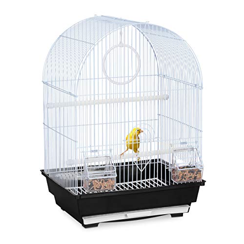 Relaxdays Cage à Oiseaux, canaris, perruches, avec perchoirs, balançoire & mangeoires, HLP 49,5 x 34,5 x 31 cm, Blanc