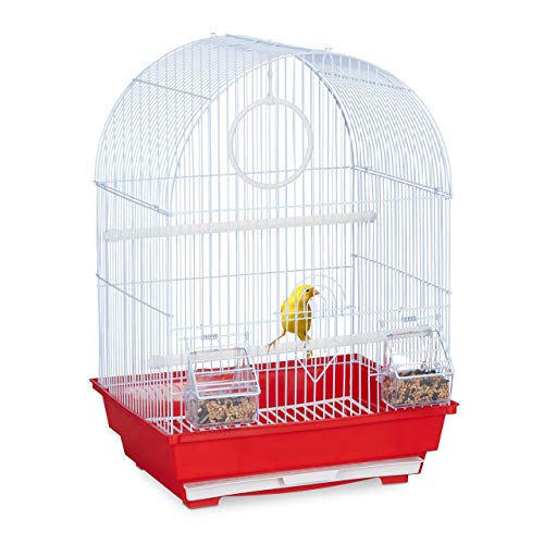 Relaxdays Cage à Oiseaux, canaris, perruches, avec perchoirs, balançoire & mangeoires, HLP 49,5 x 34,5 x 31 cm, Rouge