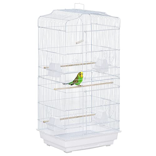 Pawhut Cage à Oiseaux volière avec mangeoires perchoirs Plateau excrément Amovible Cage pour canaris perruches perroquets 46,5 x 35,5 x 92 cm Blanc