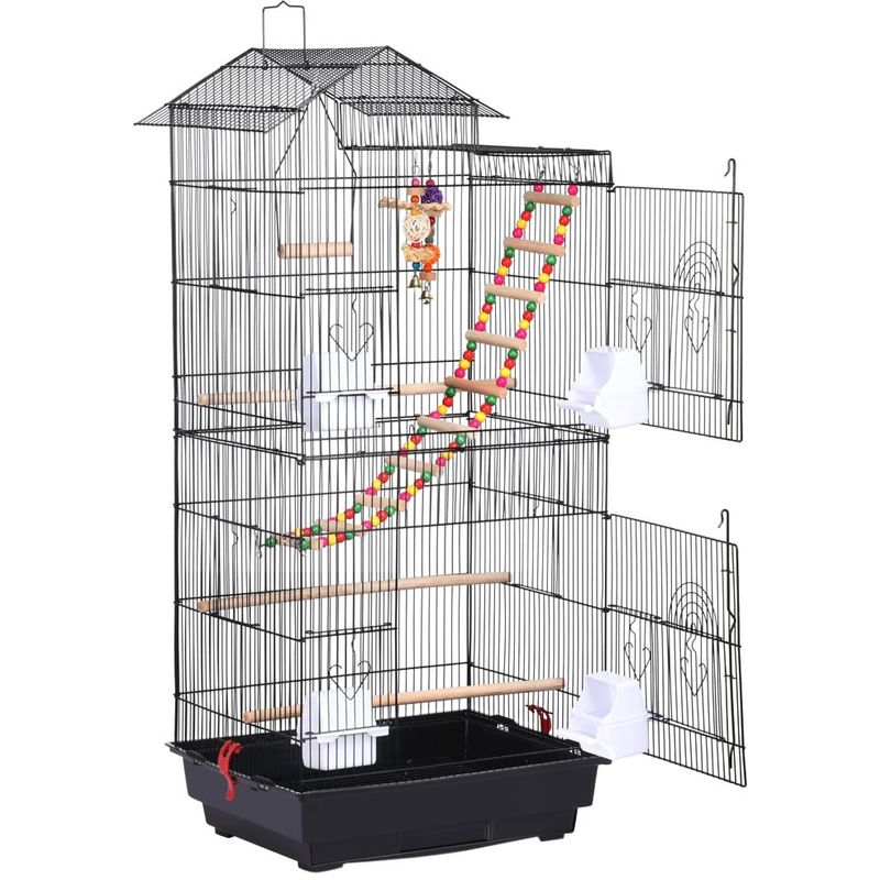 Yaheetech Cage à Oiseaux avec 3 Jouets Poignée Portable 4 Mangeoires 3 Perchoirs Cage pour Perruche Calopsitte Conure Pinson Canaris 46 x 35,5 x 99 cm