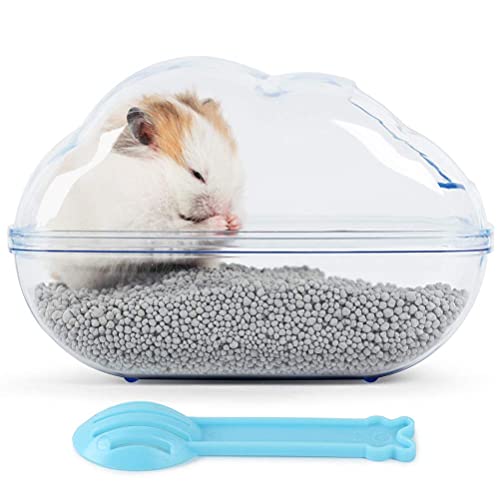 BUCATSTATE Salle de Bain à Sable pour Hamster, Transparent Baignoire à Sable pour Hamster avec Pelle, Accessoires de Cage pour Cochon d’Inde, Gerbille, Nains (Transparent Blue, L)