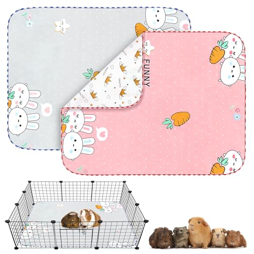 FineInno 2Pcs Doublures de Cage pour Cochon d'Inde 70 x 50cm imperméable et Réutilisables Coussinets de Tapis de Pipi Cochon d'Inde pour Petits Animaux Lapin Hamsters