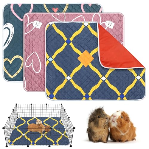 3PCS Tapis de Propreté Lavables Réutilisables pour Cage de Cochon d'Inde,Bébé Matelas Imperméable,Tapis de Dressage pour Petits Animaux, Hamsters,Lapins(35*45cm)