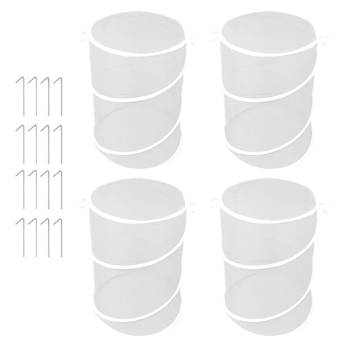 4 Protecteurs de Plantes de L'emballage des Animaux, Couvercle de Plante Filet D'oiseau Pop-up avec 16 Ongles Moulus pour Protection Jardin, Cage Filet Pliant pour Légumes (White)