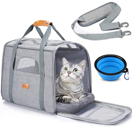 Morpilot Sac Transport Chat Chien, Caisse de Transport Chat Respirant et Pliable Cage Transport Chat avec Matelas en Peluche Amovible + Bol (Accepté au Maximum 15lbs/7kg,44 * 31 * 34cm)