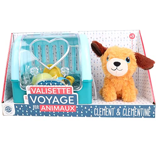 CLEMENT CLEMENTINE - Peluche et Sa Cage de Transport - Jeu d'Imitation - 110121 - Modèle Aléatoire - Peluche - Chien ou Chat - Jouet Enfant - 17 cm x 15 cm - À Partir de 3 ans