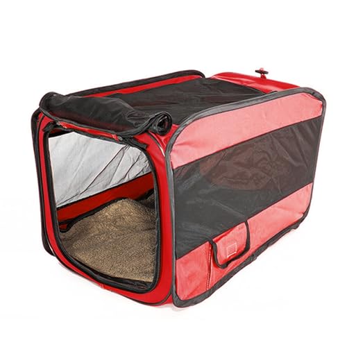 Luocute Porte-Chat Latéral Souple, Cage de Transport Pliable Rouge pour Chien, pour Voyage, Voiture, Camping en Plein Air avec Piquet au Sol, Rouge S