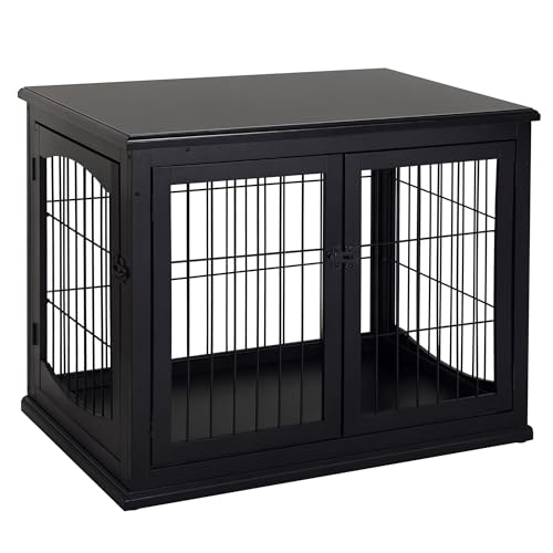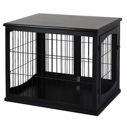 PawHut Cage pour Chien Animaux Cage en Bois MDF Classe E1 3 Portes verrouillables Max. 30 Kg dim. 81L x 58l x 66H cm Noir