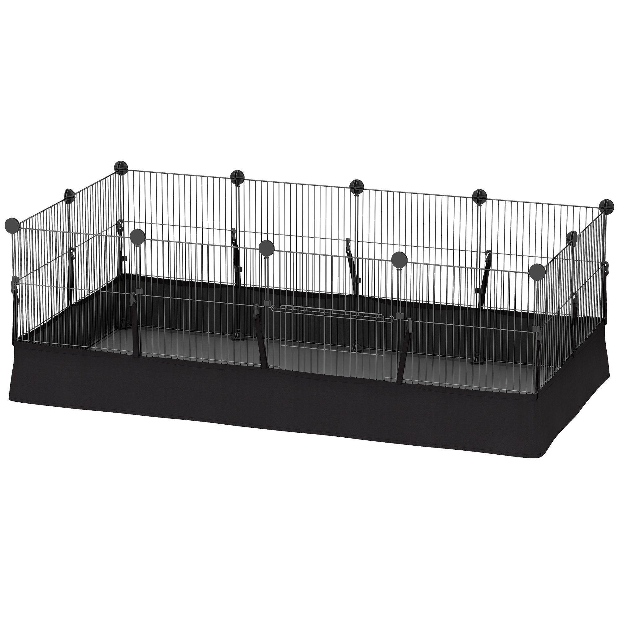 PawHut Enclos pour petits animaux, cage à lapin modulable 12 panneaux avec tapis étanche, en acier, 120 x 60 x 40 cm, noir