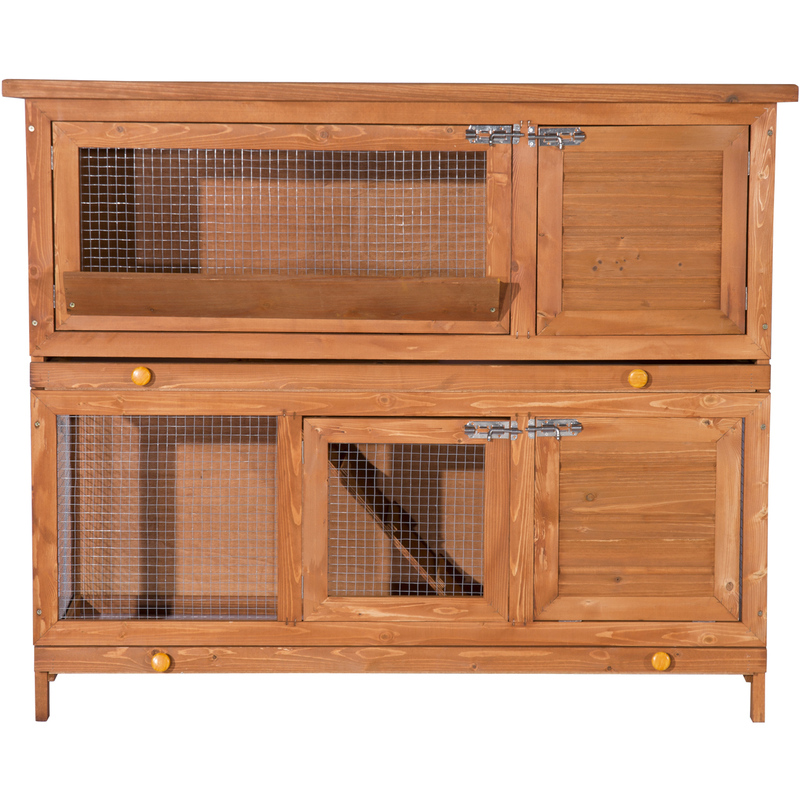 Pawhut - Cage a lapin poulailler clapier en bois de pin de grande taille avec 2 etages 120x48x100 cm