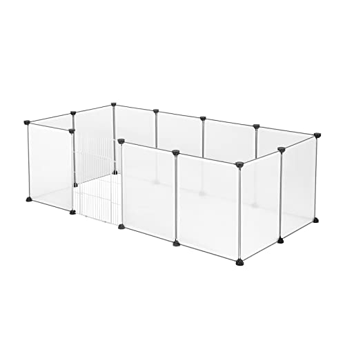 FENGZEQUAN Parc for Chien Intérieur,Parc Enclos, Cage, Clôture, avec Plancher, Intérieur, Modulable, en Plastique, for Cochon d’Inde, Lapin, Hérisson, Petits Animaux(Fully Transparent,12 Pieces)