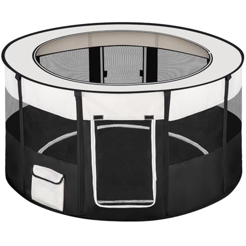 tectake® Parc a Chiot Pliable, Parc pour Chien, Chat, Chaton, Lapin, Cochon d'Inde et Autres Petits Animaux, Sol Amovible, 114 x 60,5 cm, Cage pour Chien Cage Lapin et Animaux de Compagnie, Noir