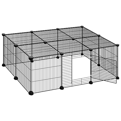 PawHut Enclos pour Petits Animaux, Cage à Lapin modulable, 31 Panneaux avec niches surélevées, Parc clôture pour Animaux domestiques intérieur pour cochons d'Inde, Lapins, hérissons, en Acier, Noir