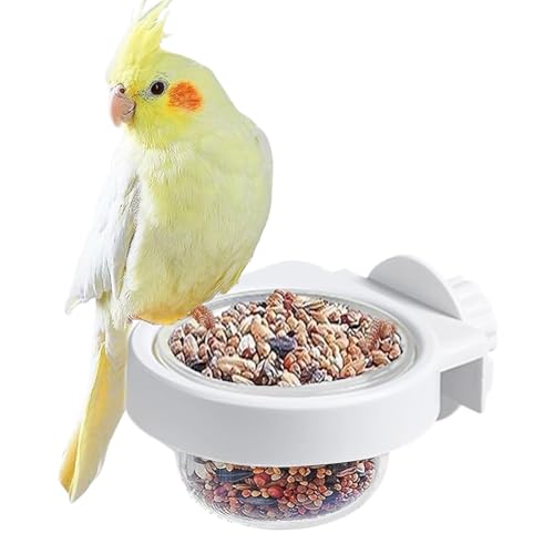 ETUCYNG Mangeoire à oiseaux sans désordre pour cage – Récipient alimentaire en acrylique avec perchoir | Récipient alimentaire pour perruche pour cage pour calopsitte, écureuil, pinson, inséparable