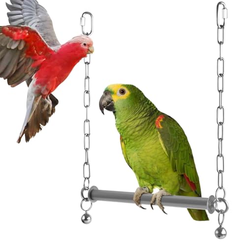 Cage balançoire pour oiseaux – Grand perchoir en acier inoxydable avec clochette | Jouet amusant pour perruche calopsitte, conure, inséparable, canari, ara, gris africain et cacatoès