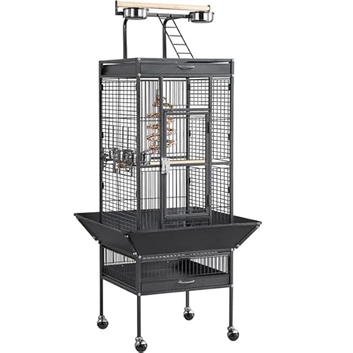 Abician Cage à Oiseaux sur Pied Voliere Oiseaux Interieur Cage pour Perruches à roulettes Grand Cage Oiseaux en Métal 66,5 x 65,6 x 156,5 cm Noir
